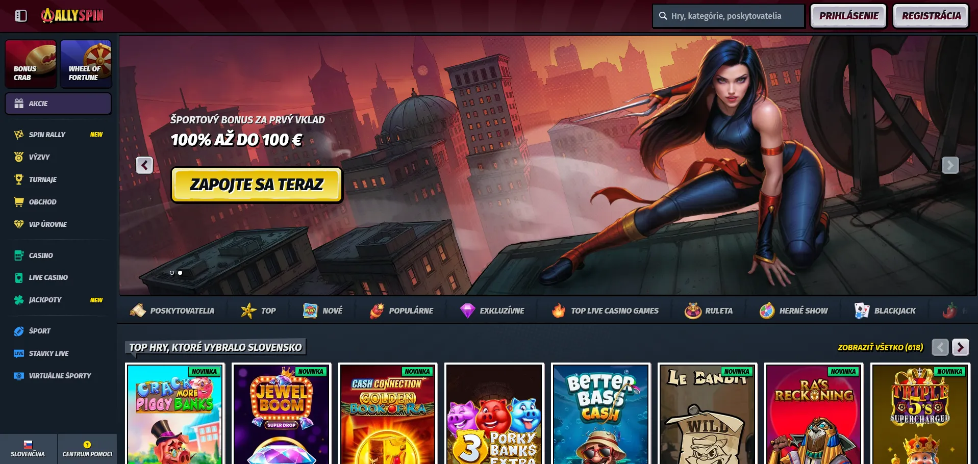 AllySpin patrí medzi zahraničné online kasina, ktoré si rýchlo našli cestu aj k hráčom zo Slovakia. Nových hráčov víta štedrým bonusom: 100% bonus k prvému vkladu až do 500 € + 150 voľných zatočení 🎁. Vklad aj výber sú dostupné v EUR, takže Slováci nemajú starosť s prepočtom meny.